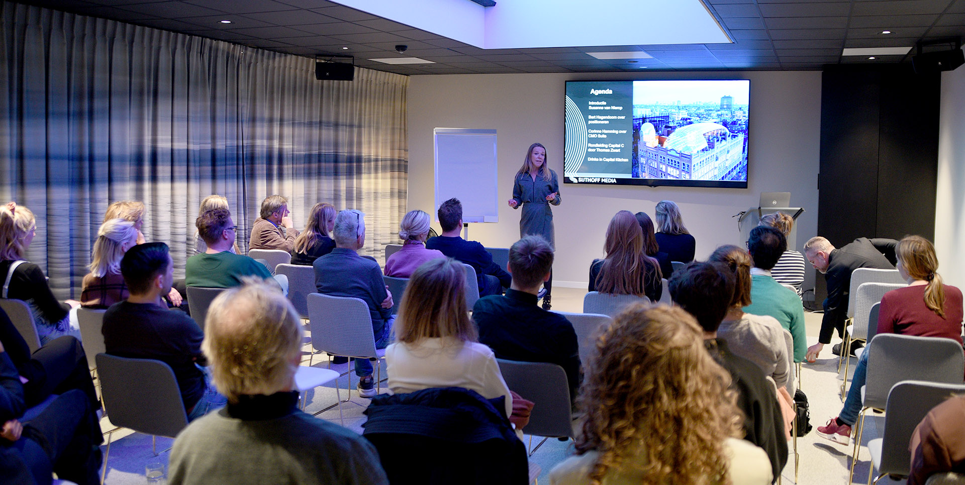 Het event begon met een ontvangst in het restaurant Capital Kitchen en werd vervolgd in de inspirerende en kleurrijke Skyscape zaal. Hier bespraken Content Director Susanne van Nierop en Community Manager Corinne Hamming de plannen voor komend jaar. Susanne gaf bovendien handige redactionele tips om content zo effectief en gebruiksvriendelijk mogelijk te maken, bijvoorbeeld door het gebruik van koptitels. Corinne gaf een update over de snelgroeiende CMO Community en gaf in een inkijk in het programma van de CMO Day die op dinsdag 17 mei zal plaatsvinden.