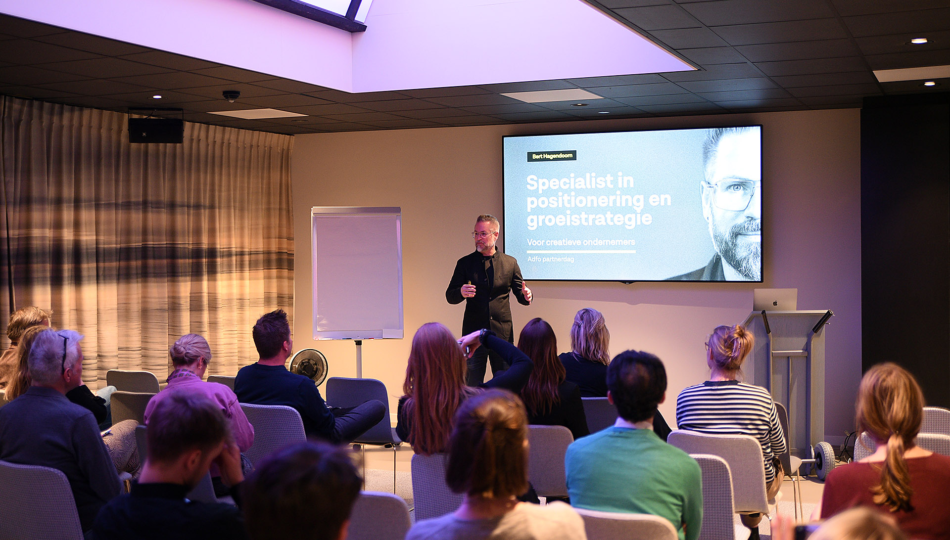 Naast diverse netwerkmogelijkheden stond er ook een korte inhoudelijke sessie op de agenda. Bert Hagendoorn, specialist in positionering en groeistrategieën, gaf een workshop over bureaupositionering. Dit werd bijzonder goed ontvangen aangezien veel van de aanwezigen vanuit de bureauwereld kwamen. Tijdens de Q&A kwam het gesprek dan ook goed los en werden key learnings en ervaringen, onder andere op gebied van contentmarketing, uitgebreid met elkaar uitgedeeld.