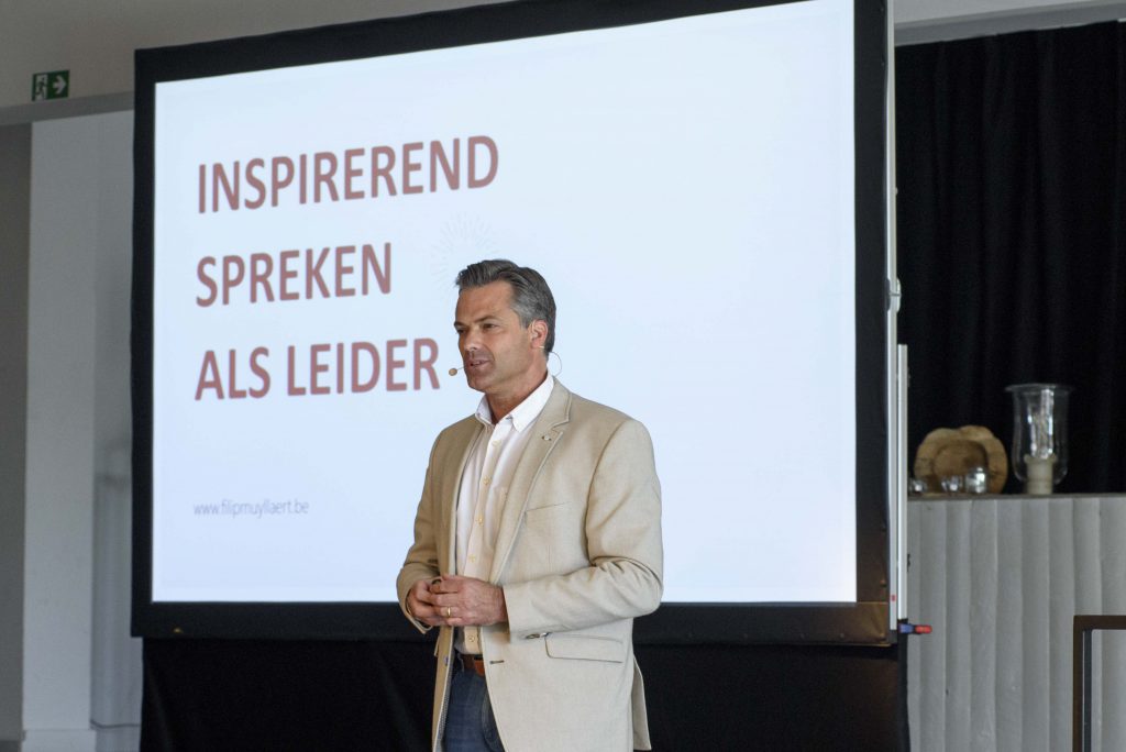 Dat vergt een ander soort leiderschap, geeft Fanny mee. “Verbindend leiderschap gaat om het empoweren van alle stemmen binnen de onderneming, zodat je als onderneming echt kan veranderen en innoveren.” Filip Muyllaert gaat er tijdens de volgende keynote dieper op in: hoe vind je je stem? En hoe verwoord je jouw ideeën zo dat anderen luisteren, begrijpen en voelen? Filip laat het publiek vooral omdenken: hoe kan je een zelfde boodschap telkens weer een beetje anders vertellen? Hij haalt er Tendai monniken bij, de kuiltjes in een golfbal, het unieke geluid van sterren, en designer Raymond Loewy. “Onthou bij een volgende email of speech vooral: vertrouwde verrassing”, stelt hij. “Maak mensen nieuwsgierig door iets bekends te kruisen met iets nieuws en verrassends.”