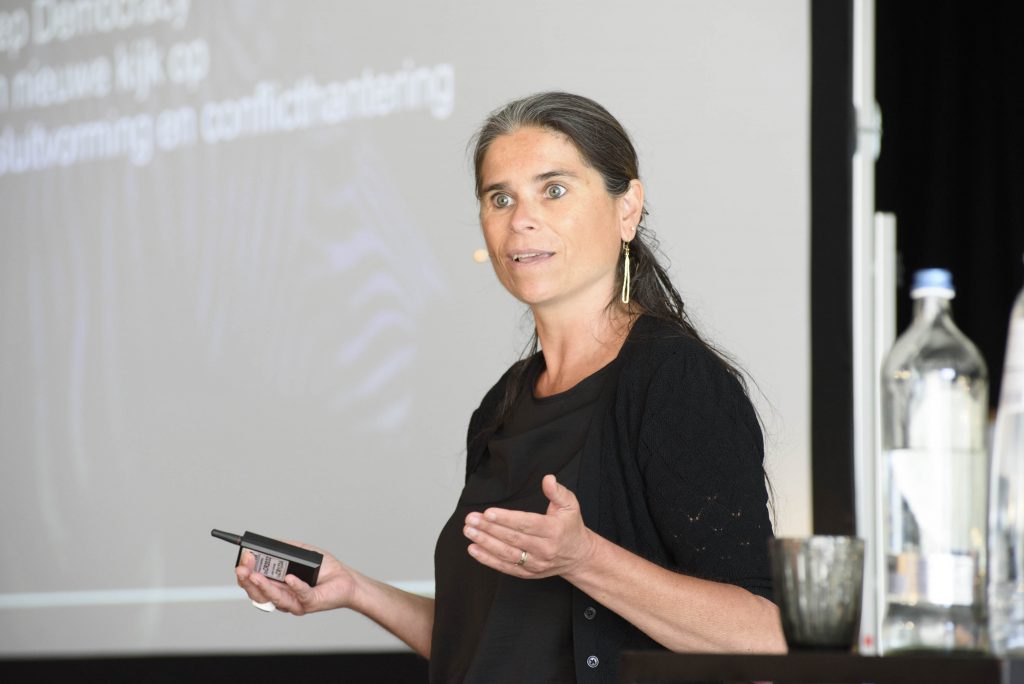 Transitiepedagoge Fanny Matheusen sluit zich daarbij aan. “In onze huidige bedrijfsculturen hebben we de neiging om dissidente stemmen systematisch te onderdrukken”, stelt ze. Hoewel beide sprekers elkaar nooit eerder hebben ontmoet, sluit de lezing van Fanny naadloos aan op die van Stefaan. Fanny stelt een methode voor om verandering te realiseren binnen de context en vanuit de noodzaak die Stefaan even daarvoor schetste.